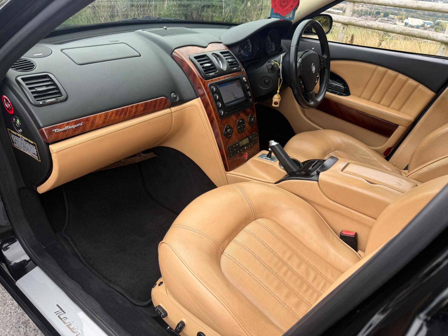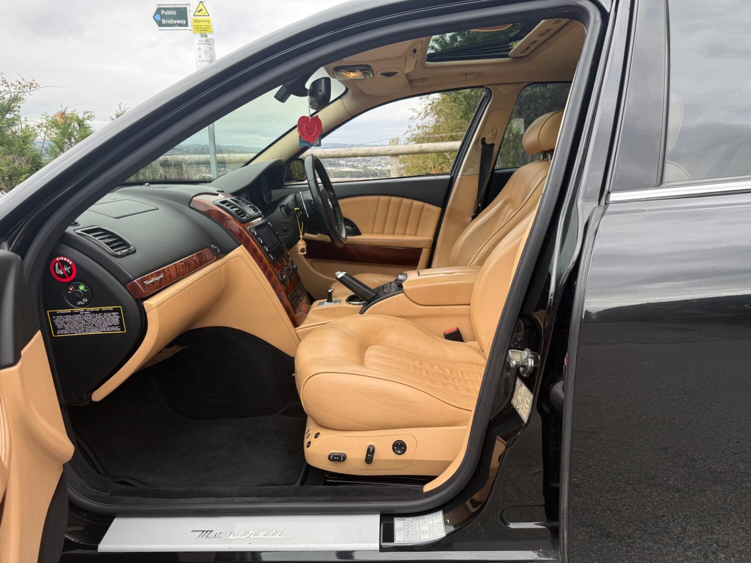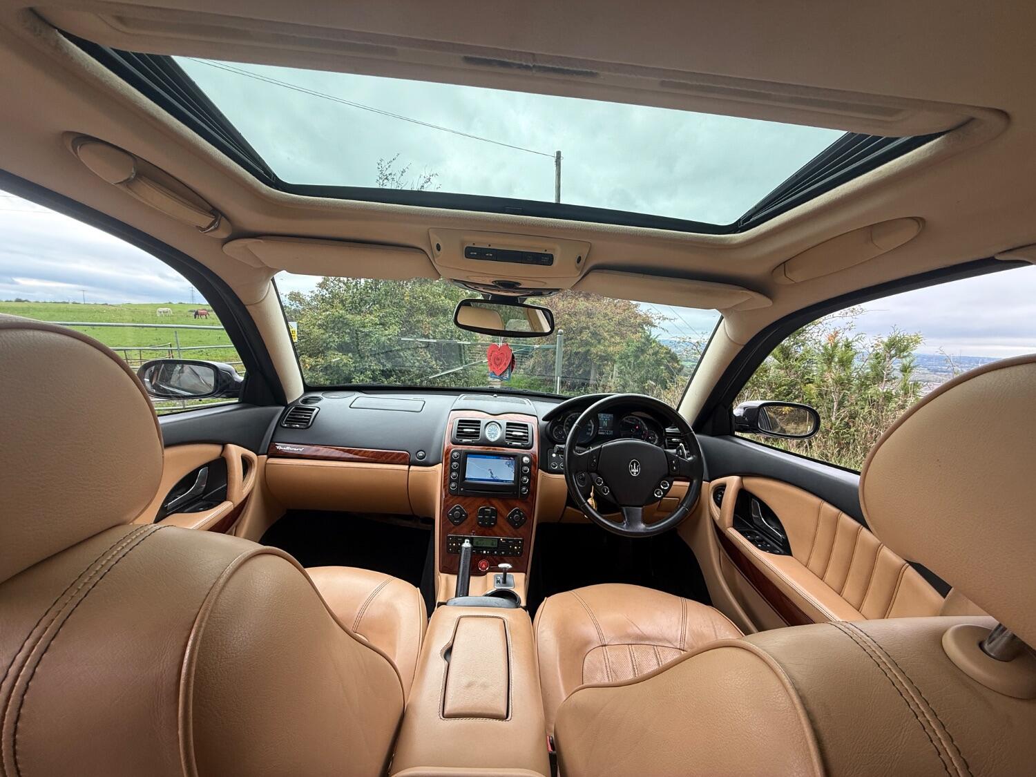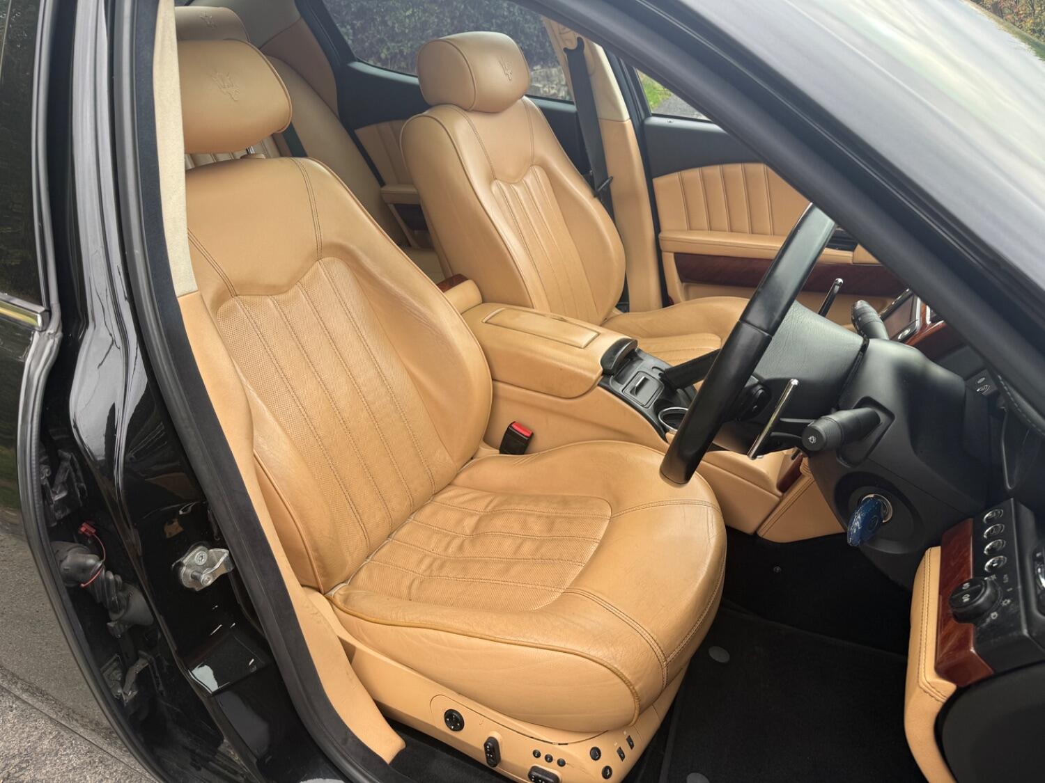 ** MUST READ SPEC ** * METALLIC PAINTWORK * BEIGE PERFORATED LEATHER INTERIOR * ELECTRIC SUNROOF * ELECTRIC FRONT AND REAR SEATS * HEATED FRONT AND REAR SEATS * ELECTRIC REAR WINDOW BLINDS * ELECTRIC STEERING COLUMN * ELECTRIC FOLDING MIRRORS * SATELLITE NAVIGATION SYSTEM * UPGRADED ALLOY WHEELS * FRONT AND REAR PARKING SENSORS * BI-XENON HEADLIGHTS WITH HEADLIGHT WASH * TRIDENT HEADRESTS * BOSE SURROUND SOUND * PADDLE SHIFT GEARS * M/A SHIFT * SPORT MODE * BLUETOOTH * CLIMATE CONTROL * PRIVACY GLASS * FRESHLY SERVICED AND MOT'D WITH NO ADVISORIES * Burdon Automotive are delighted to present this stunning Maserati Quattroporte 4.2 which comes with arguably the best spec and service history in the market currently. This comes with ALL the options you would possibly ever want and need and comes with stacks of paperwork to show thousands of pounds worth of work thats been completed. This is a rare chance to get your self a modern classic supercar for the same sort of money you'd spend on a Vauxhall Corsa!! These 4.2's sound superb and truly give you a fantastic level of performance! These are very hard to come by with the Electric Sunroof also!!! Call us for more information - we dont think this will last long....SERVICE HISTORY - 09/25 - 69K MILES - ANNUAL SERVICE * 09/24 - 68K MILES - ANNUAL SERVICE AND GEARBOX SERVICE * 09/23 - 68K MILES - ANNUAL SERVICE AND REPAIR AND REFIT CATALYTIC CONVERTOR * 08/22 - 67K MILES - ANNUAL SERVICE * 09/16 - 55K MILES - SERVICE * 09/15 - 51K MILES - MAJOR SERVICE AND GEARBOX SERVICE * 06/15 - 50K MILES - REPLACED CLUTCH * 06/13 - 43K MILES - SERVICE AND BELTS * 05/11 - 35K MILES - MAJOR SERVICE * & MANY MORE INVOICES!! * * HPI CLEAR * 2 KEYS * ALL MAJOR CARDS ACCEPTED * PART EXCHANGE WELCOME * WALK AROUND VIDEO AVAILABLE ON REQUEST * DELIVERY AVAILABLE * CALL US FOR MORE INFORMATION!! *