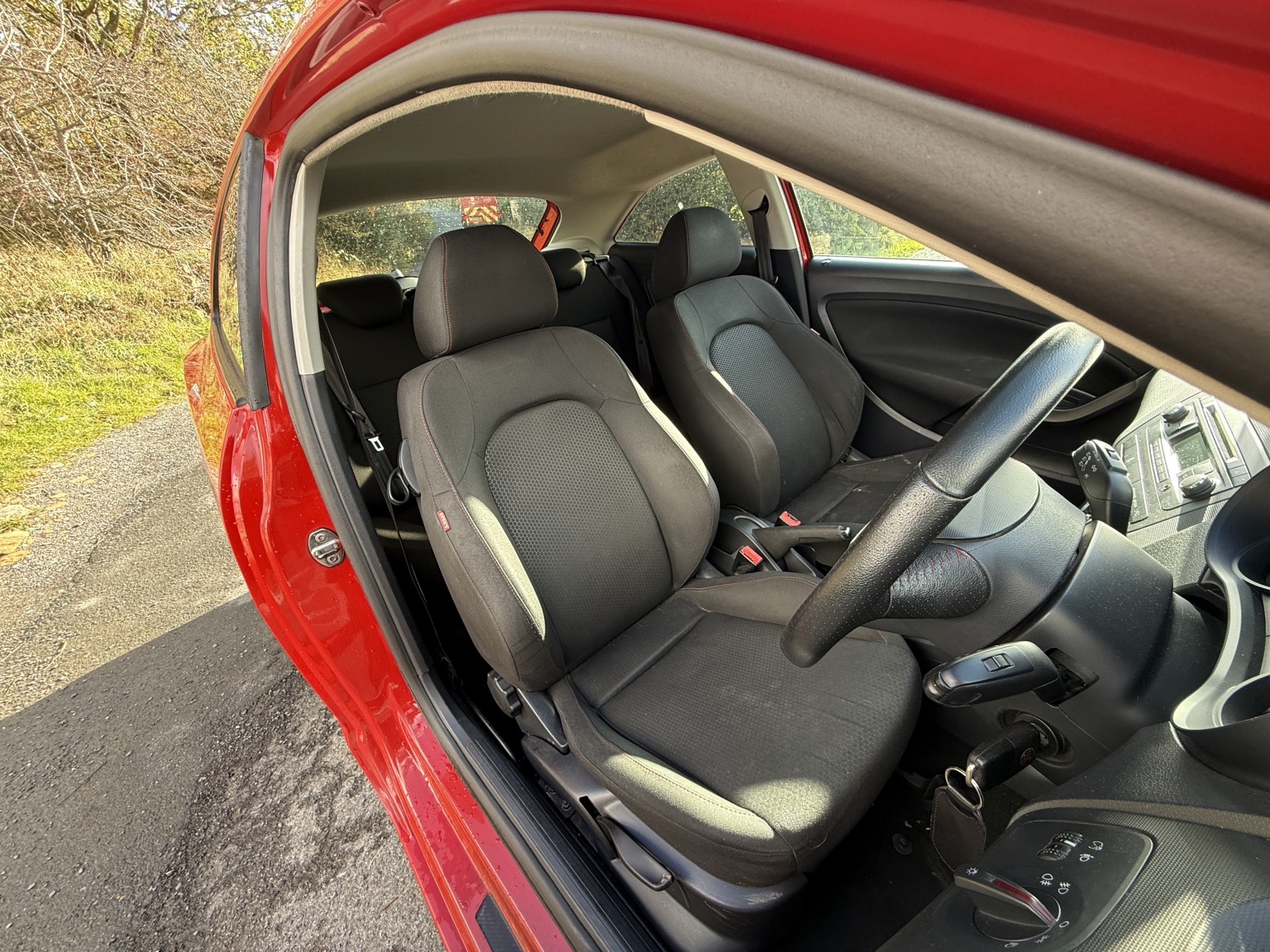 * RED PAINTWORK * BLACK FR SPORT SEATS * SATELLITE NAVIGATION SYSTEM * PRIVACY GLASS * BLACK ALLOY WHEELS * BLUETOOTH * BLACK PACK BADGES * FOG LIGHTS * FLAT BOTTOM LEATHER MULTI-FUNCTION STEERING WHEEL * AIR CONDITIONING * TRIP COMPUTER * BLACK DOOR MIRRORS * Here we have a lovely Seat Ibiza FR 1.2 TSI, which is a 2013 registered vehicle with just 101,500 miles on the clock. This car certainly looks the part with the Black alloys, windows, lights and mirrors etc contrasting fantastically against the striking red paintwork! This does indeed have the all important Sat Nav Upgrade, and has even had items replaced from its previous MOT such as the exhaust system and Tyre.